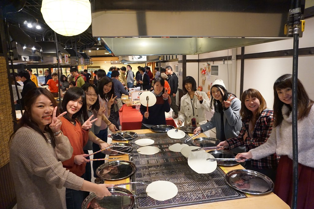 女性社員は大きいせんべい手焼き体験をさせていただいたのですが